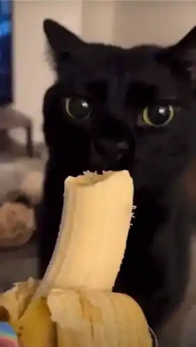 Black Cat Eats Banana