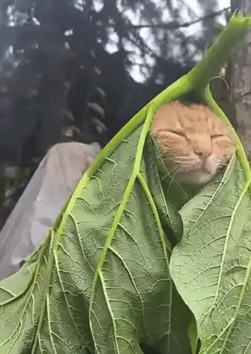 Adorable Cat Sleeping Peacefully in a Leaf — GifMeme